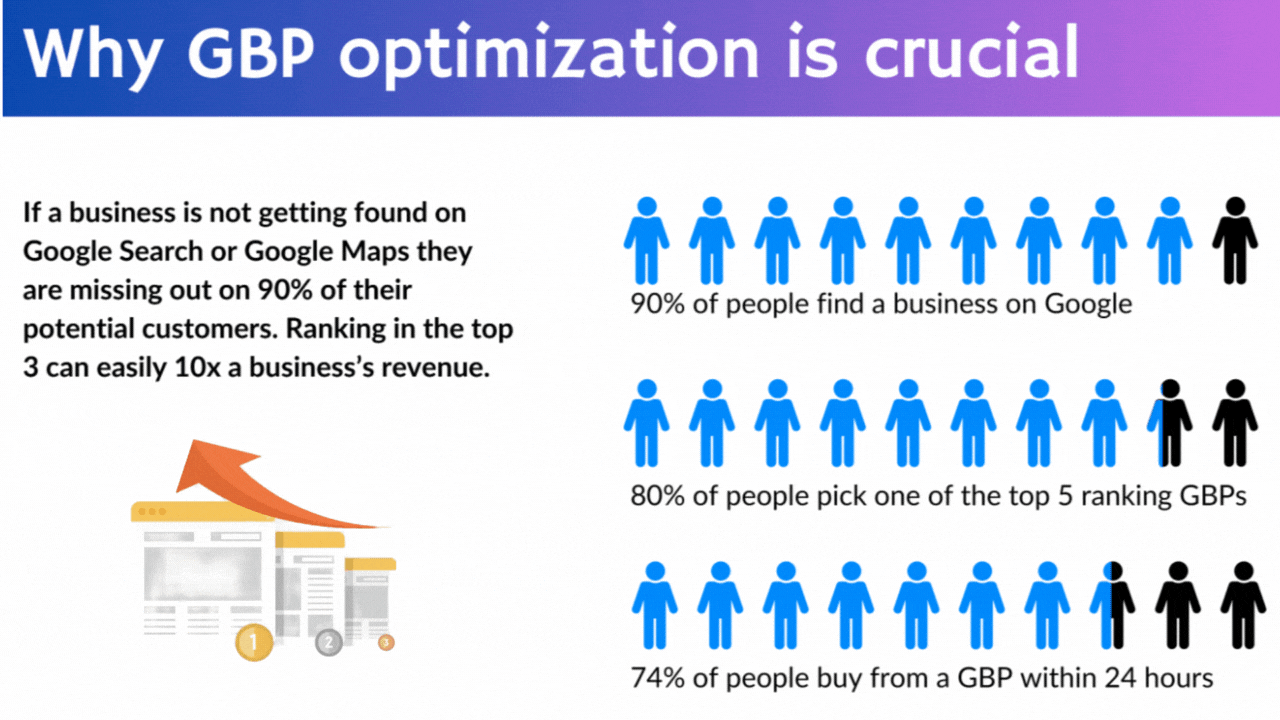 Improved Rankings: We implement these recommendations to cause a significant increase in your Google Business Profile position.
